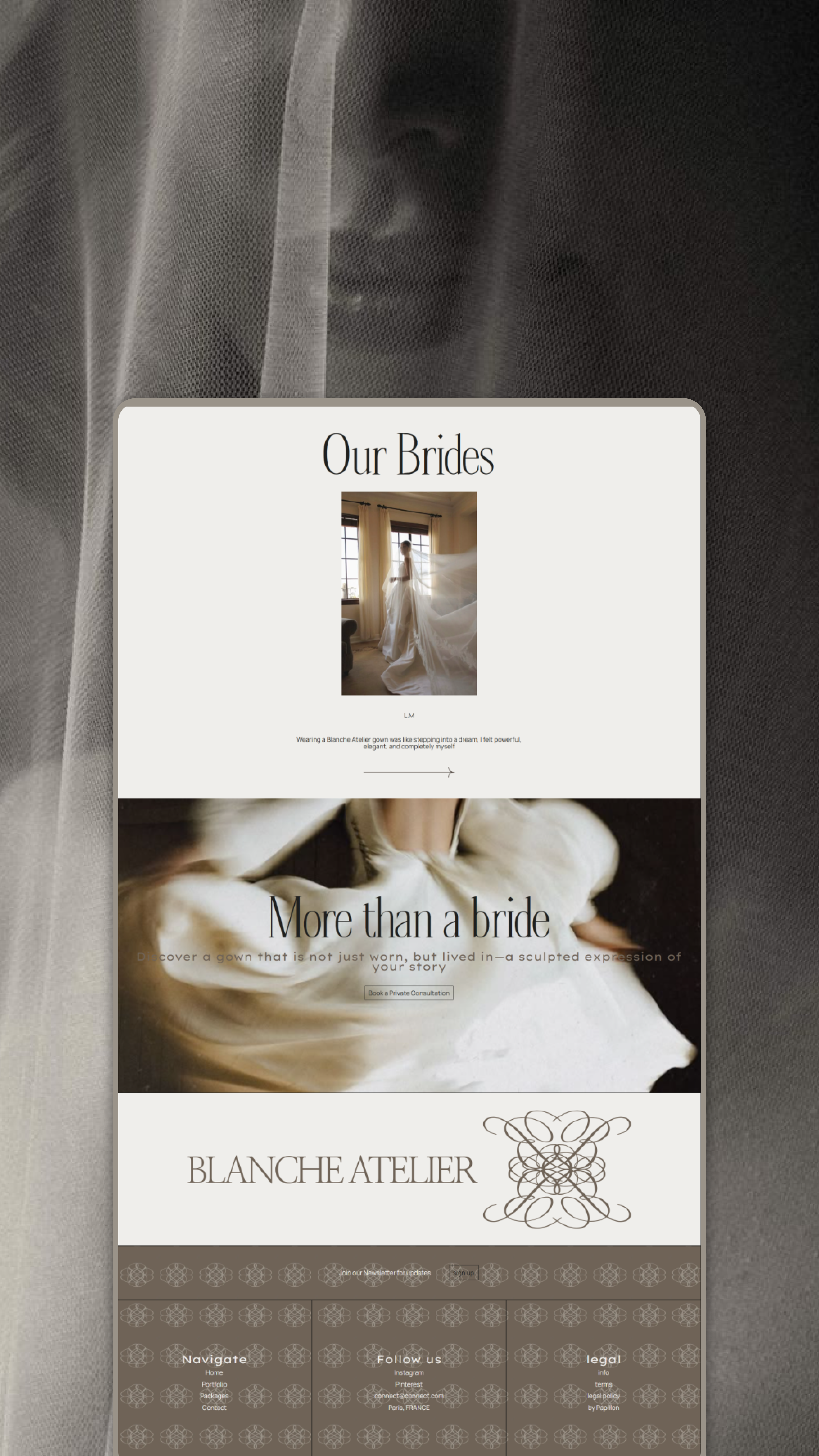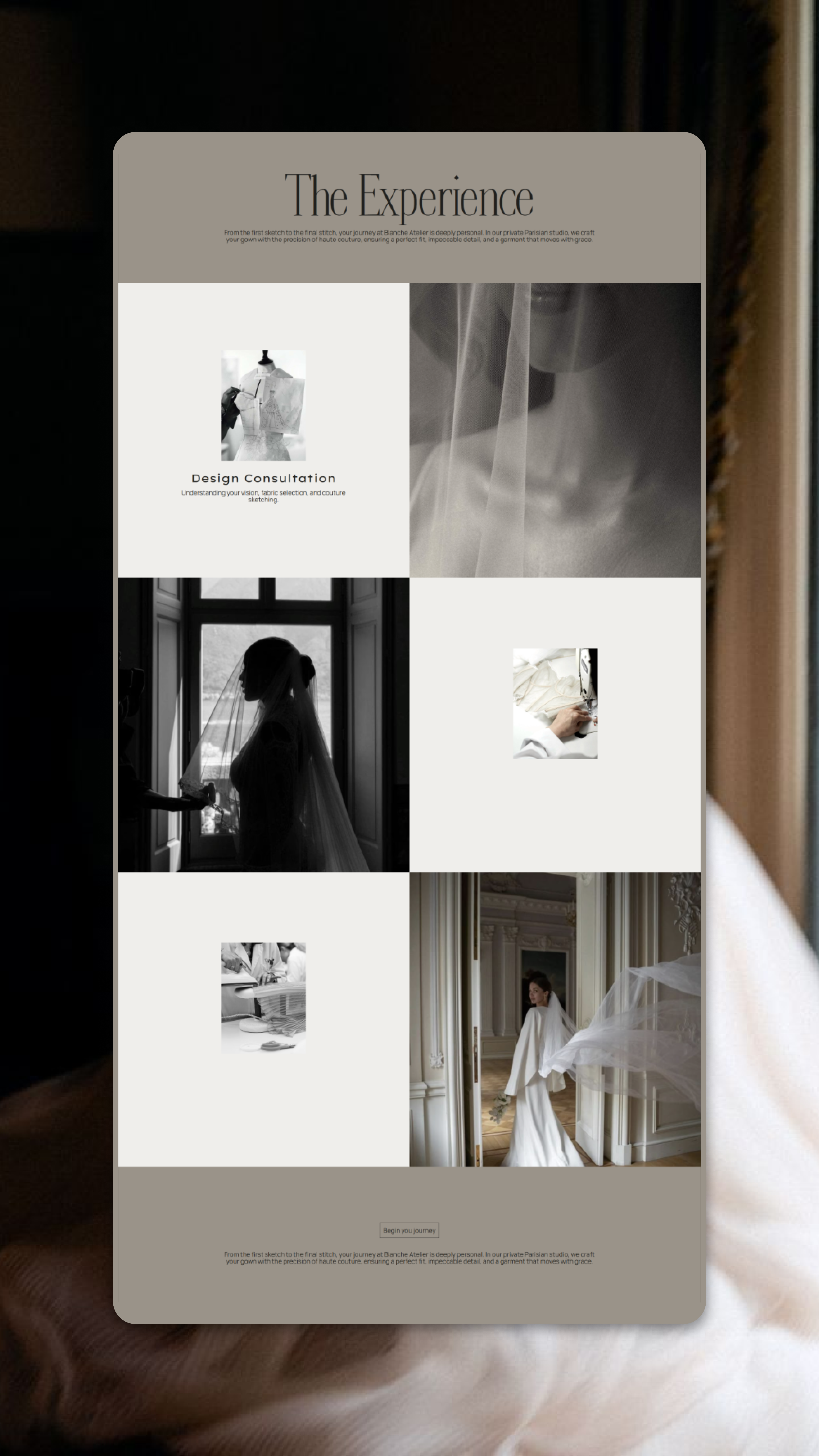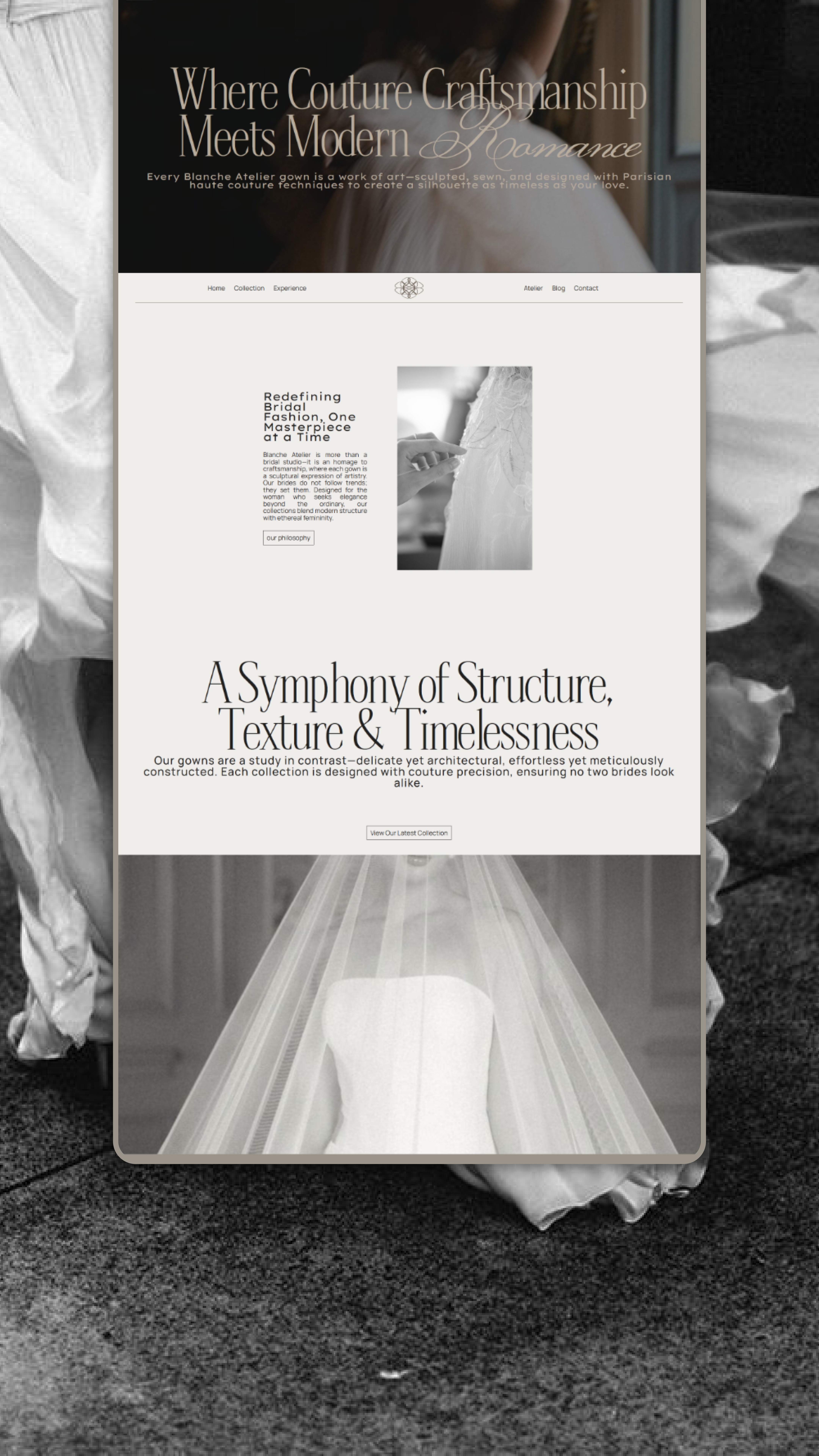 For this project, I crafted a refined, immersive homepage that aligns with Blanche Atelier’s artistic precision and luxury positioning. My approach included brand positioning, copywriting, and strategic content structuring to elevate their exclusivity and artistry. By integrating storytelling, luxury sales psychology, and immersive imagery direction, the result is a seamless digital experience that embodies the atelier’s commitment to elegance, modernity, and bespoke artistry.